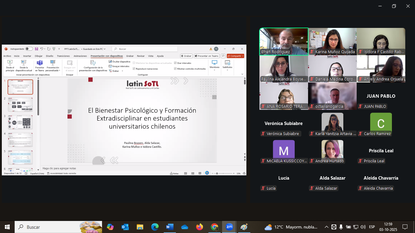 Durante el encuentro, presentó la ponencia titulada “El Bienestar Psicológico y la Formación Extradisciplinar en Estudiantes Universitarios Chilenos”, en la que expuso la primera fase cuantitativa de una investigación desarrollada durante el período 2023-2024.